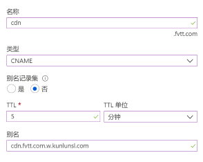 注意,别名或者 CNAME 处记录,是从之前全站加速的域名管理面板复制来的。